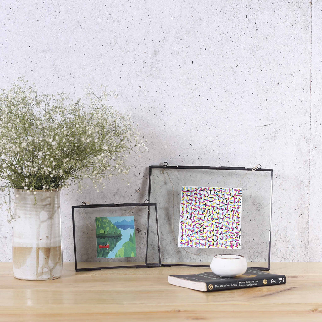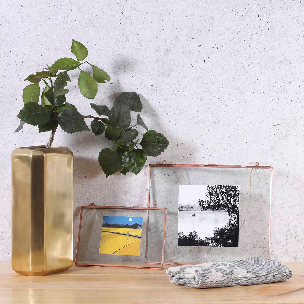 Choose your favourite memories—photographs, concert tickets, letters from loved ones, etc—and place them in this antique brass frame. Each piece is unique, as it is made entirely from antique and recycled materials, and comes with a recycled string tie. Group with similar frames of different sizes for an intriguing wall display. Available in copper or black finish, and in two sizes - 7*5 and 8*10.