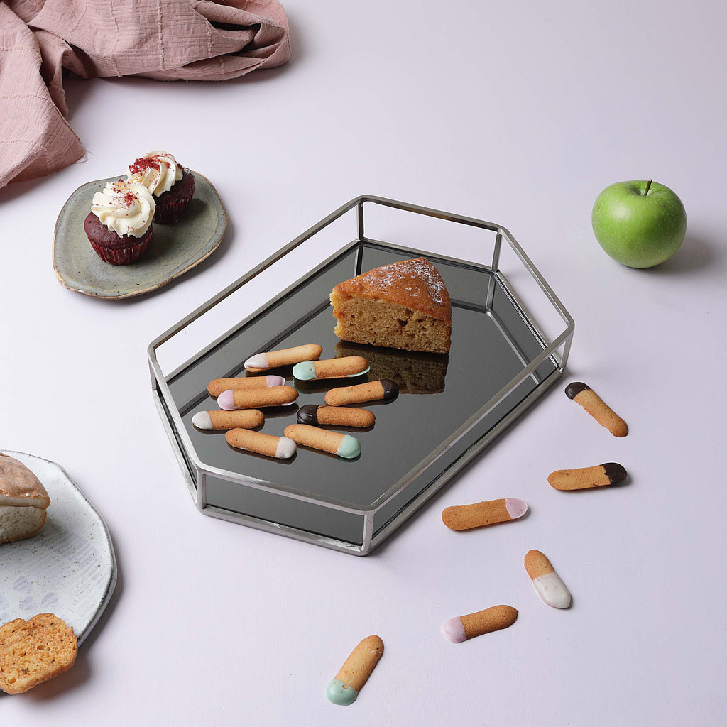A classy silver-grey hexagonal metal frame with a glass base make the Hexa an all rounder. Perfect for upping your décor and entertaining without trying too hard.